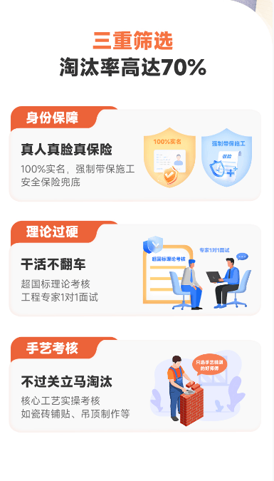 所有工长和工匠都需要颠末实名认证、理论、手艺查核后才能入驻平台,确保了工匠的施工质量和办事立场。“当家APP平台采用业从曲连工长工匠设想师模式,业从的拆修款两头公司抽取30-35%,每个环节验收及格后才付款,业从确认通过,平台实行“水电泥木油”施工分步领取买卖,打破行业潜法则。